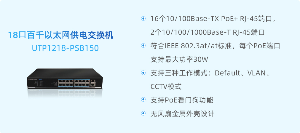 優(yōu)特普1系列交換機不僅具備基礎(chǔ)的網(wǎng)絡(luò)轉(zhuǎn)發(fā)功能,還集成了智能管理特性,如PoE系列交換機支持IEEE 802.3af/at標準,為接入的供電設(shè)備提供智能識別和安全供電,有效避免因供電不足或過載導致的設(shè)備損壞。此外,其內(nèi)置的PoE看門狗技術(shù)更是實現(xiàn)了對終端設(shè)備的24小時智能監(jiān)測,一旦發(fā)現(xiàn)設(shè)備異?;螂x線,將自動進行重啟或上報故障信息,極大地減輕了運維人員的工作負擔,降低了維護成本。
