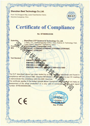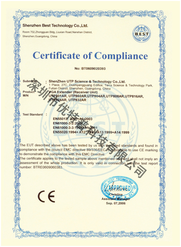 近日,優(yōu)特普雙絞線傳輸設(shè)備全系列產(chǎn)品全面通過了國際頂級認(rèn)證體系CE認(rèn)證。通過這次認(rèn)證活動,優(yōu)特普產(chǎn)品的性能和穩(wěn)定性又得到了一次較大幅度的提升,在品質(zhì)保證上有了充分的自信,客戶在選用優(yōu)特普產(chǎn)品時也多一份可靠的依據(jù)。