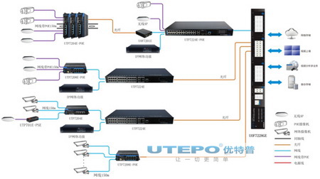 系統(tǒng)用到了優(yōu)特普“網(wǎng)電速聯(lián)”高清監(jiān)控傳輸方案,主要用到了優(yōu)特普4口、8口、24口等PoE交換機(jī)以及安防專用匯聚交換機(jī),實(shí)現(xiàn)從分布式攝像頭的接入到匯聚的過(guò)程,有以下特點(diǎn):