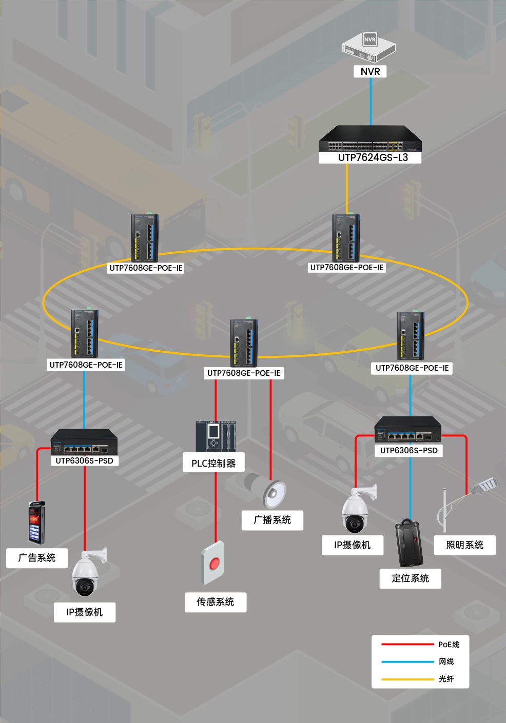 用戶可通過(guò)面板上的撥碼開(kāi)關(guān)切換交換機(jī)的工作模式,在CCTV模式下,優(yōu)特普交換機(jī)的下聯(lián)端口最遠(yuǎn)傳輸距離延長(zhǎng)至250米 (速率降為 10M)。