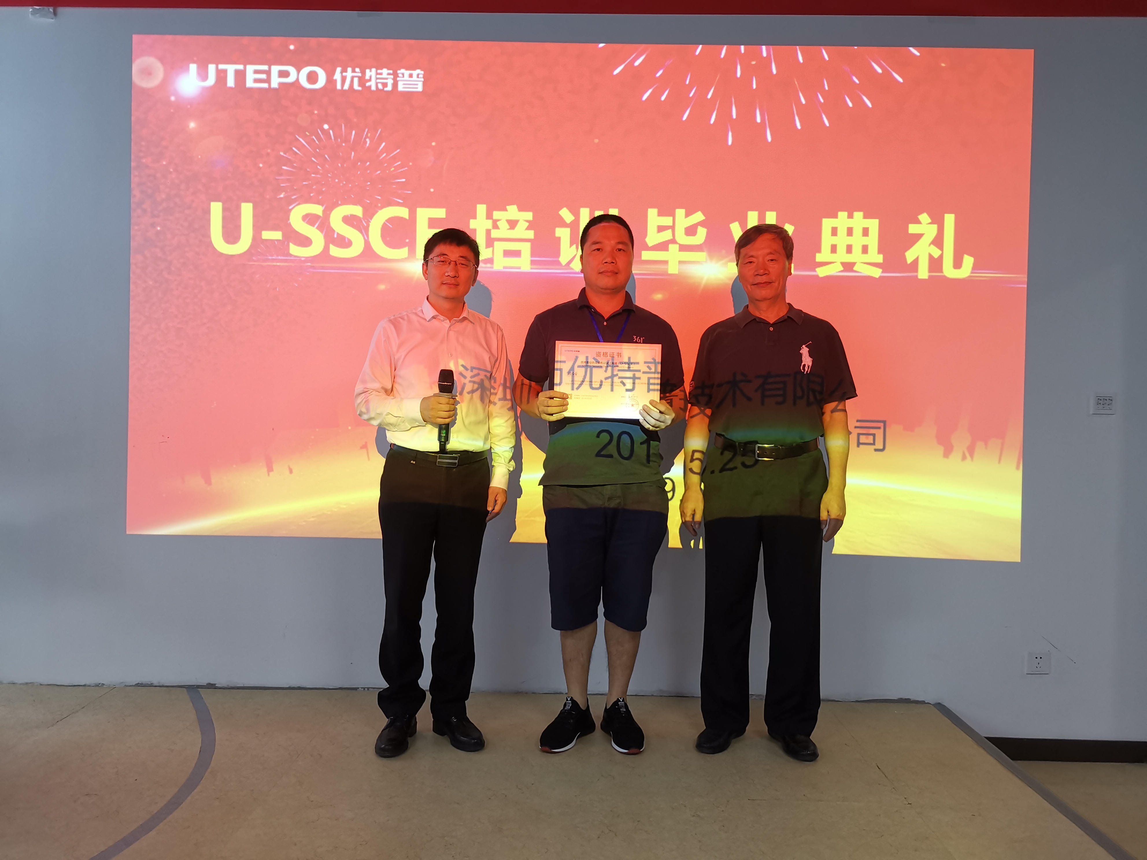 優(yōu)特普董事長(zhǎng)聶懷東、深安協(xié)專(zhuān)家王達(dá)為學(xué)員頒發(fā)畢業(yè)證書(shū)