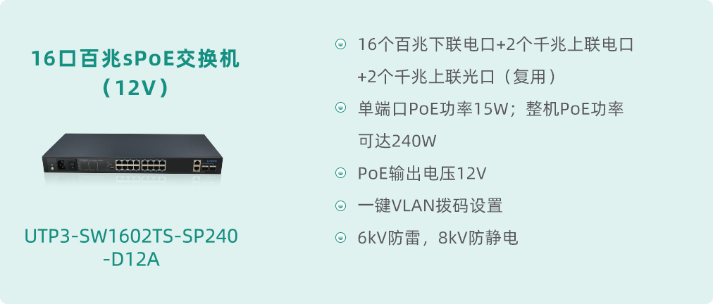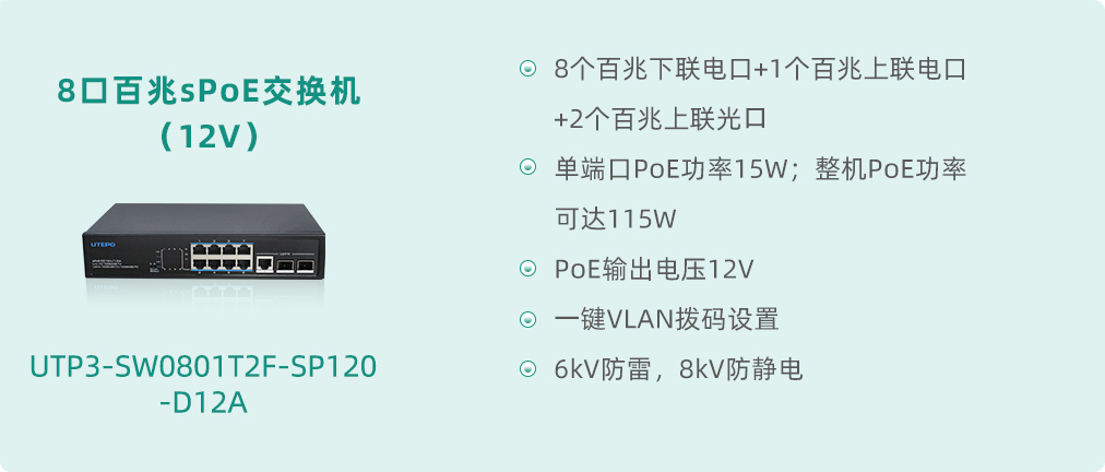 在當(dāng)今數(shù)字化、智能化的時(shí)代背景下,網(wǎng)絡(luò)通信設(shè)備作為信息傳輸?shù)幕?,其性能與穩(wěn)定性直接關(guān)系到各類智能終端設(shè)備的運(yùn)行效率與用戶體驗(yàn)。尤其是在構(gòu)建智慧樓宇、智能家居、智慧安防等場(chǎng)景中,以太網(wǎng)供電(Power over Ethernet,簡稱PoE)技術(shù)憑借其便捷性、高效性,成為了連接各類智能終端設(shè)備的優(yōu)選方案。針對(duì)標(biāo)準(zhǔn)PoE未能滿足的特定市場(chǎng)需求,優(yōu)特普專門推出sPoE系列簡易版以太網(wǎng)供電交換機(jī)進(jìn)行市場(chǎng)補(bǔ)充和完善,如門禁系統(tǒng)中的可視對(duì)講機(jī)等一些需求低壓供電的終端設(shè)備,為智慧化建設(shè)帶來了全新的、更有效的解決方案。