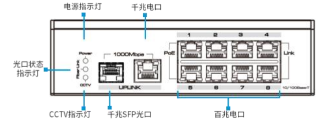 上聯(lián)端口采用1個(gè)千兆SFP光口,和1個(gè)千兆以太網(wǎng)端口設(shè)計(jì),光口采用SFP標(biāo)準(zhǔn),方便常見的光纖接口應(yīng)用;電口上聯(lián)距離長(zhǎng)達(dá)150m,適用于遠(yuǎn)距離傳輸?shù)穆酚善骰騈VR接入。