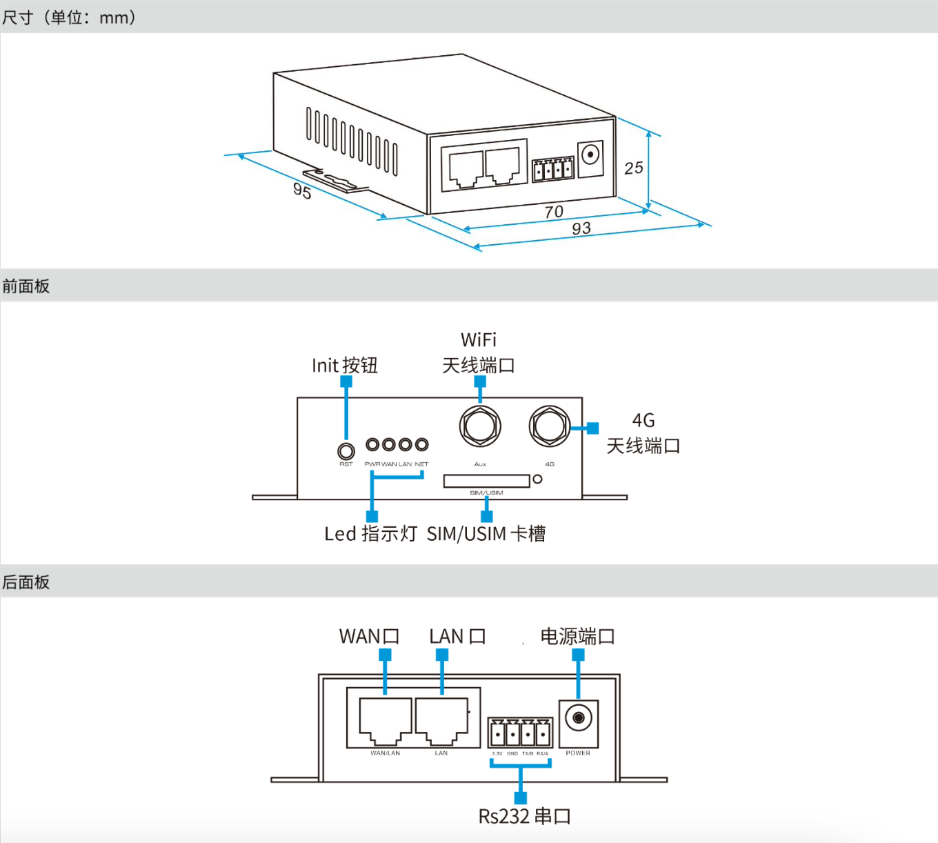 ● 1*10/100Base-TX RJ-45 WAN